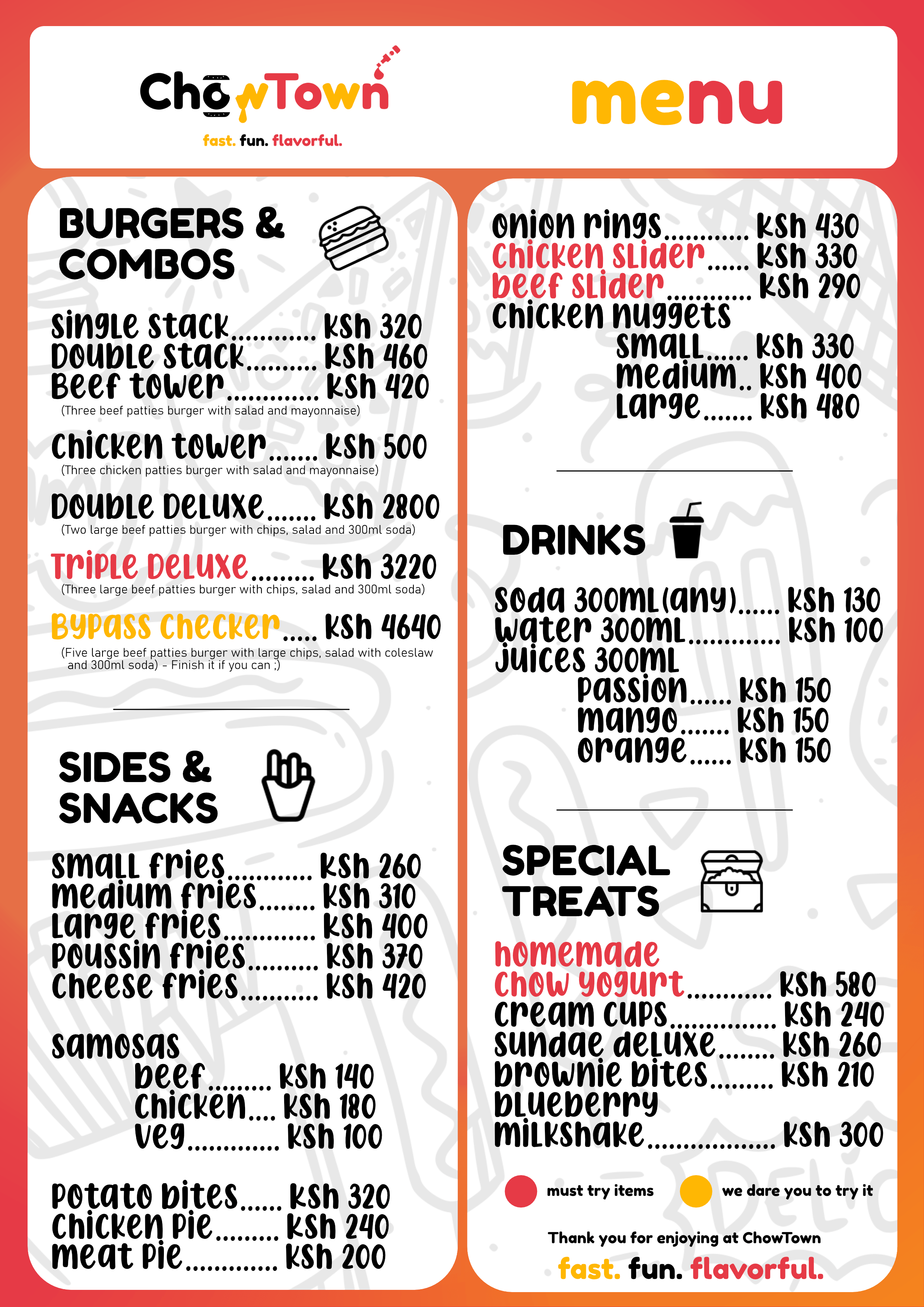 ChowTown is a fictonal fast-food restaurant that provides a fun experience for families and kids.